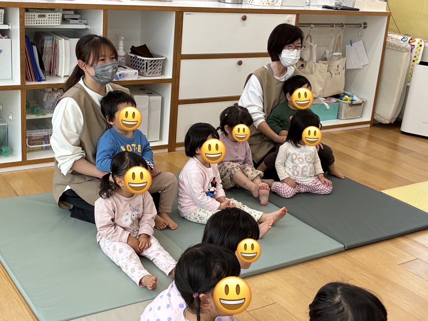 体を揺らして楽しんでいたり、上手に手遊びを真似したりして聞くことができました✨