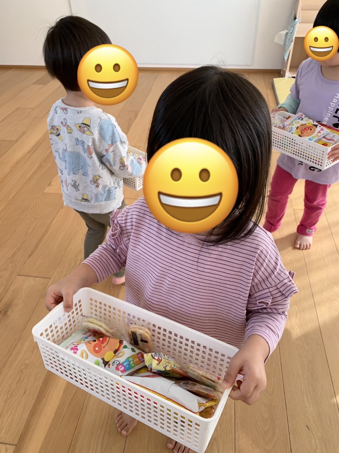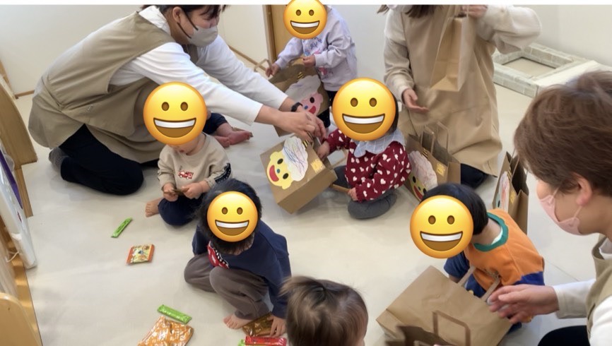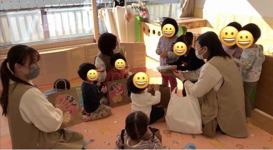 リオン組さんが中心となり、お菓子まきも行いました🍪「鬼は外〜❣️」と大きな声で言い、ラパン組さん、プラン組さんにお菓子をくれるリオン組さん、すごく頼もしく感じました😆