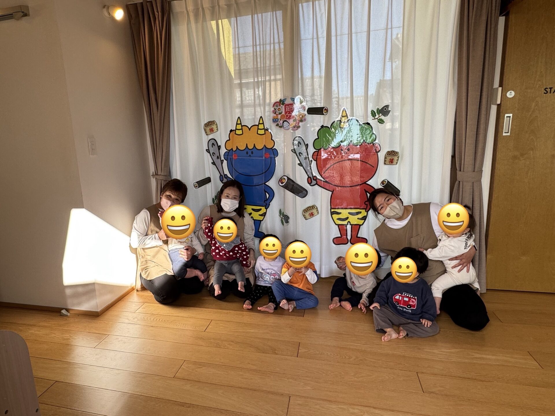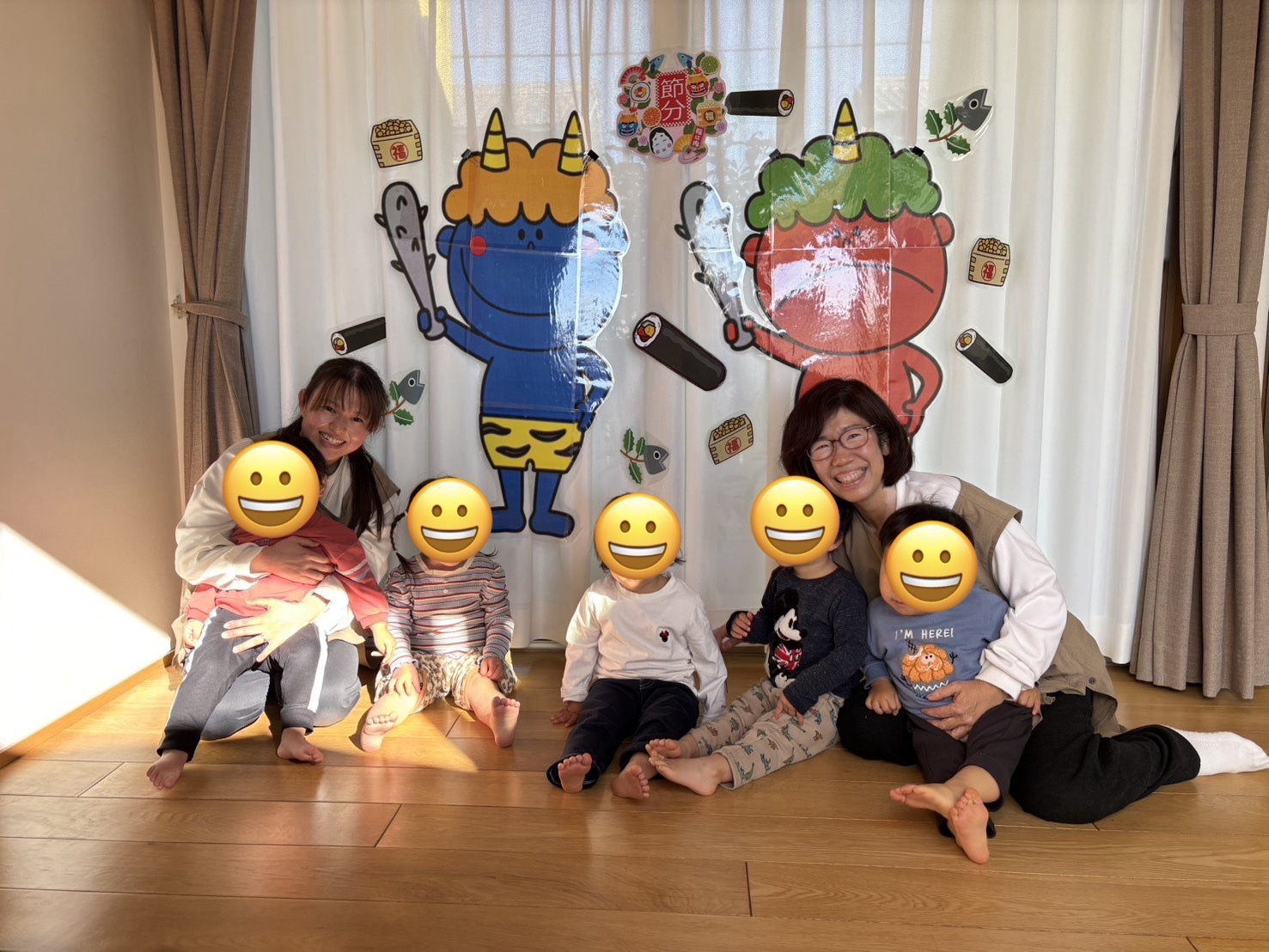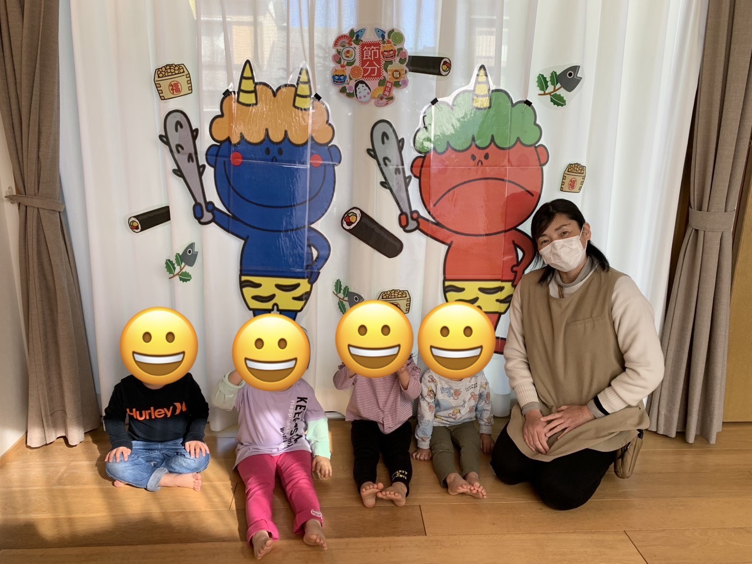 紙芝居に合わせ、節分の由来🌸も聞きました。少し退屈してしまう子もいましたが🤭、とても落ち着いた雰囲気の中、耳を澄ませて聞けていましたよ。
